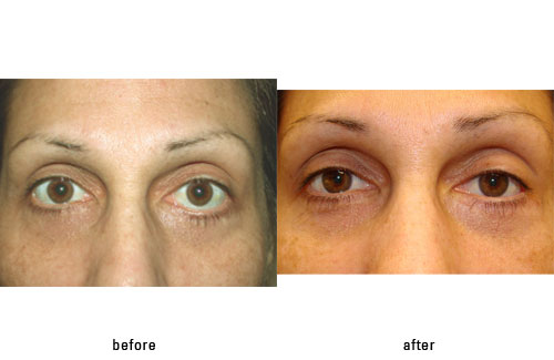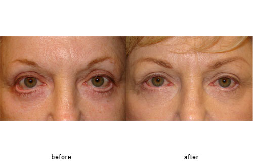 This woman had lower lid surgery elsewhere which led to pulled down (retracted) lower lids. She felt this looked strange. After revisional surgery to correct the problem (canthoplasty, cheek lift and lid elevation) she was much imporved.